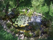Zum Haus gehört ein großer Garten mit kleinen Teichen. Die Sitzecke und der Grillplatz können von unseren Besuchern mit benutzt werden.
